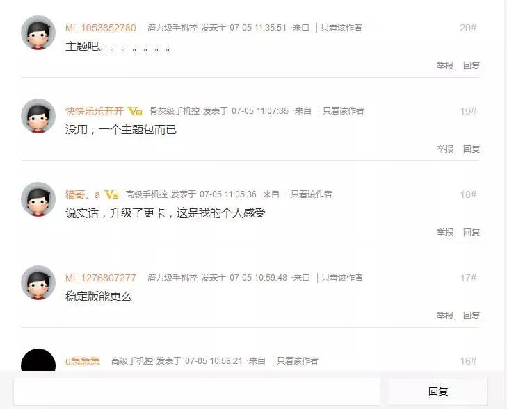 不过在推送MIUI 10系统更新过程中,小米却惹怒了一大波用户,特别是小米5S、5S Plus用户,大家愤怒都到雷军微博下面刷评吐槽了。当用户升级完MIUI 10后,惊喜的发现系统版本依然停留在Android 7.0,而基于Android 8.0的MIUI 10的新功能,完全没有体验到,也就是说只是有个UI版本,其余并没有什么实质性的提升。