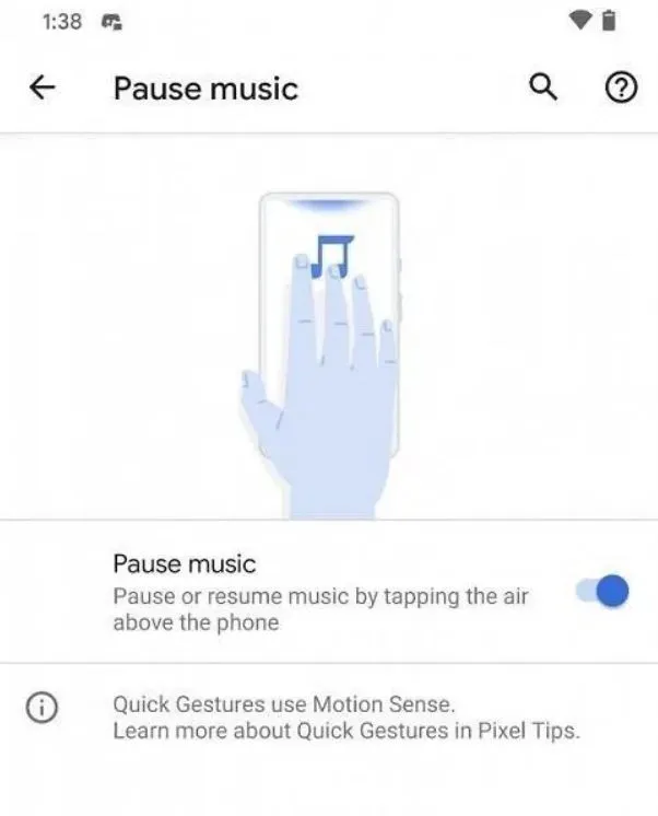 配合 Motion Sense 应用,Pixel 4 可以通过隔空手势,播放和暂停音乐。