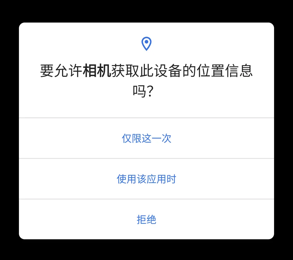 除了后台位置权限变的更严格外,Android 11 还为位置、麦克风和摄像头等敏感权限,增加了「仅限这一次」选项。