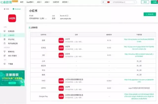 7月30日,南都记者查询七麦数据显示,包括华为、OPPO、魅族在内的安卓应用商城以及安卓手机管理软件豌豆荚、腾讯应用宝均未检索到小红书。分应用商店显示“小红书服务调整,暂不提供下载,敬请谅解”。不过苹果App Store内仍能搜索和下载。