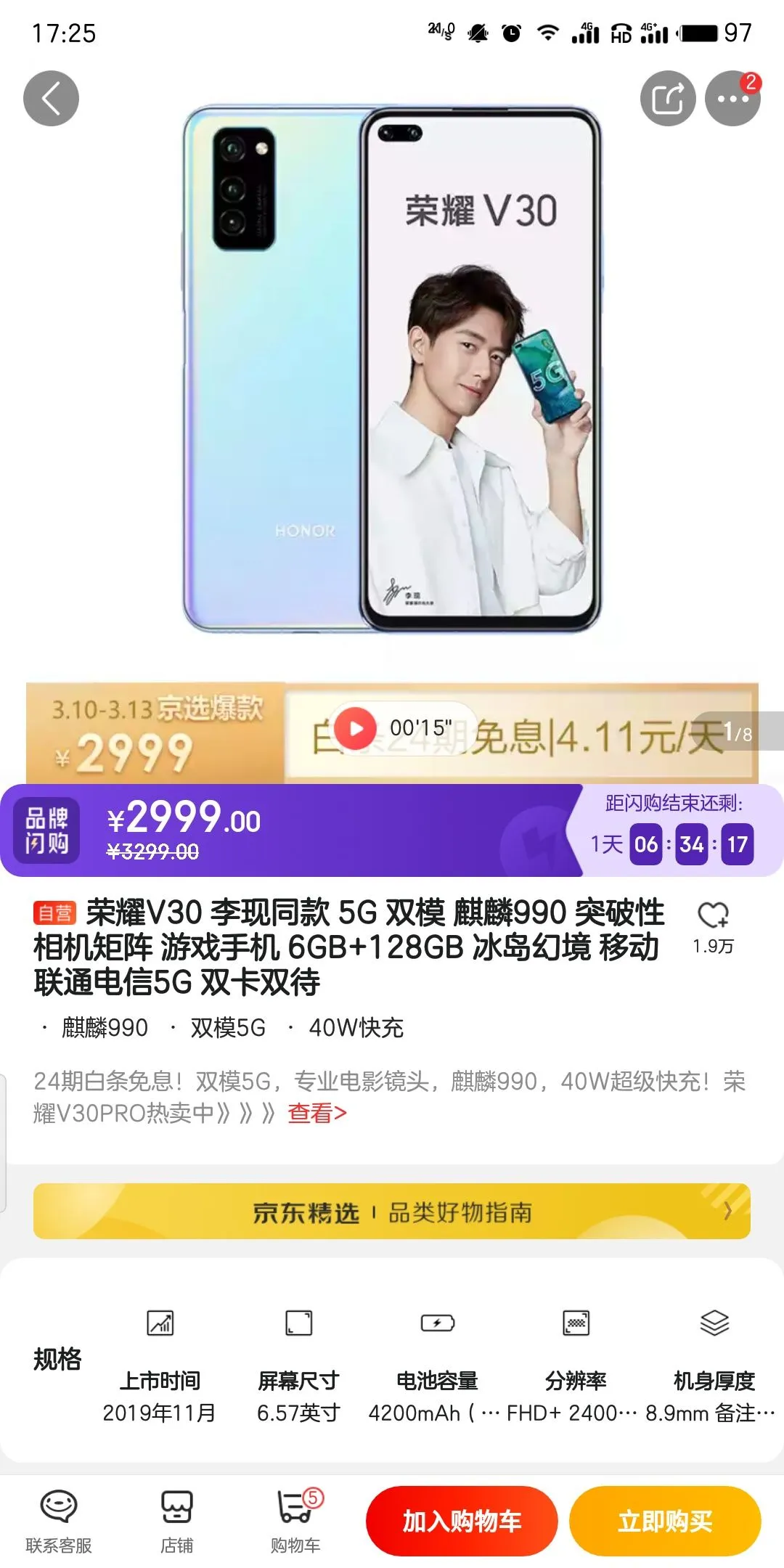 目前2999起的荣耀V30,是我们能买到的最便宜的双模5G旗舰机。