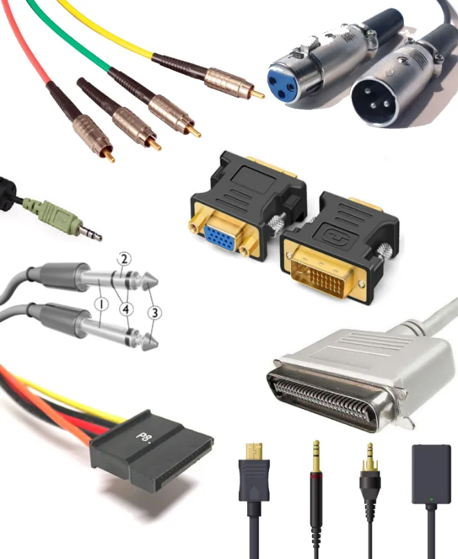 比如用于连接网线的RJ45、RJ11;传输视频的DVI、VGA、HDMI;传输音频的RCA莲花头、XLR卡农头,TRS接头(我们常用的3.5 mm耳机接口就是一种TRS接头)。