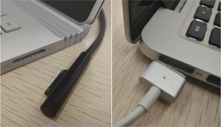 两种靠磁力连接的电脑电源接口,轻轻一拨就能断开