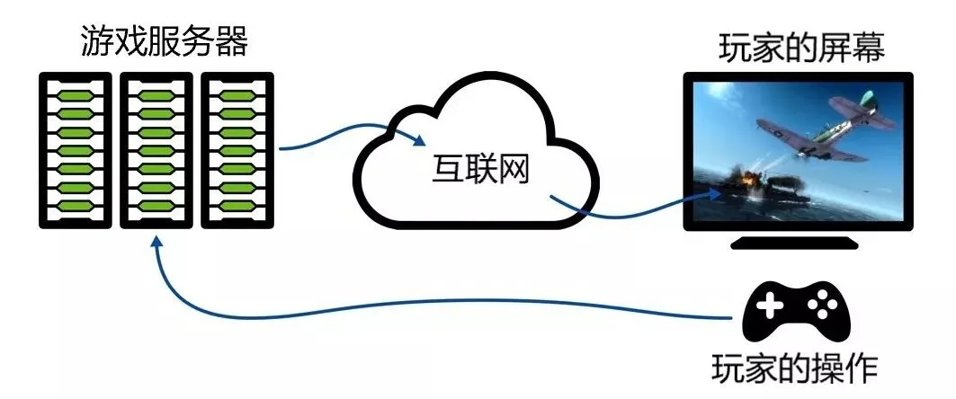 在遥远的数据中心里,放着大量由高端显卡 CPU 内存等部件组成的高配游戏主机,这些游戏主机组成了一个大型云端服务器。