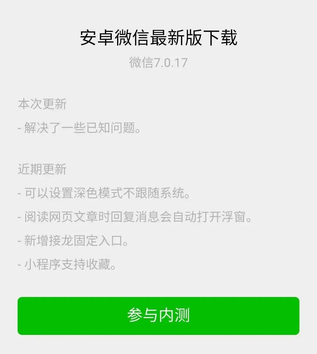 近日,“国民App”微信迎来了7.0.17的安卓内测版本,从此次微信团队添加的功能更新来看,虽然没有像之前深色模式、修改微信号、拍一拍那样有着能上互联网热搜的潜力,但在这些新功能中,也足以一窥微信的商业布局。