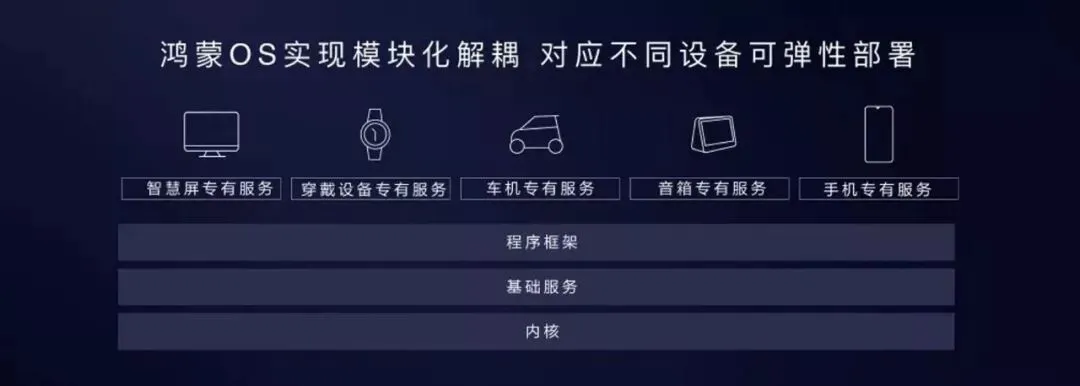 鸿蒙OS实现模块化耦合,对应不同设备可弹性部署,鸿蒙OS有三层架构,第一层是内核,第二层是基础服务,第三层是程序框架。可用于大屏、PC、汽车等各种不同的设备上。还可以随时用在手机上,但暂时华为手机端依然优先使用安卓。