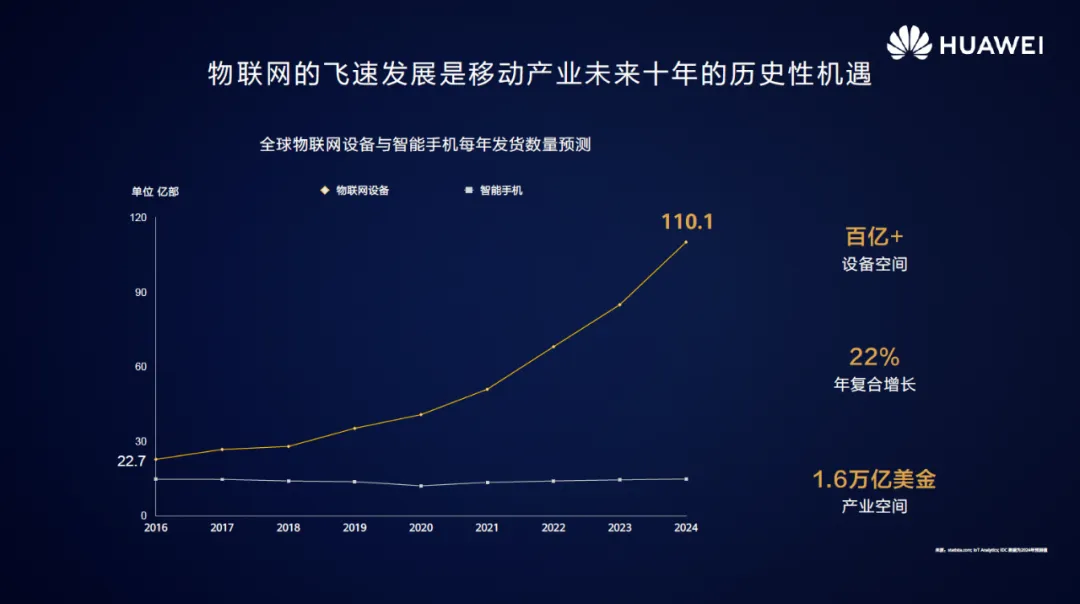主要原因是通讯技术、硬件设备还无法支持大量连网的设备有效通信,人工智能和大数据依然是物联网的制约。但是近年来,随着智能手机等硬件快速升级,5G、人工智能的普及,物联网正在逐渐走进现实。据华为全球行业展望报告预测,到2025年,个人智能终端数预计将达400亿,全球联接总数达到1000亿,全球的智能手表、眼镜等可穿戴设备将达80亿。Statista数据也显示,从2015年到2025年,人均智能设备将大幅再增加,预计将从2台增加至9台。