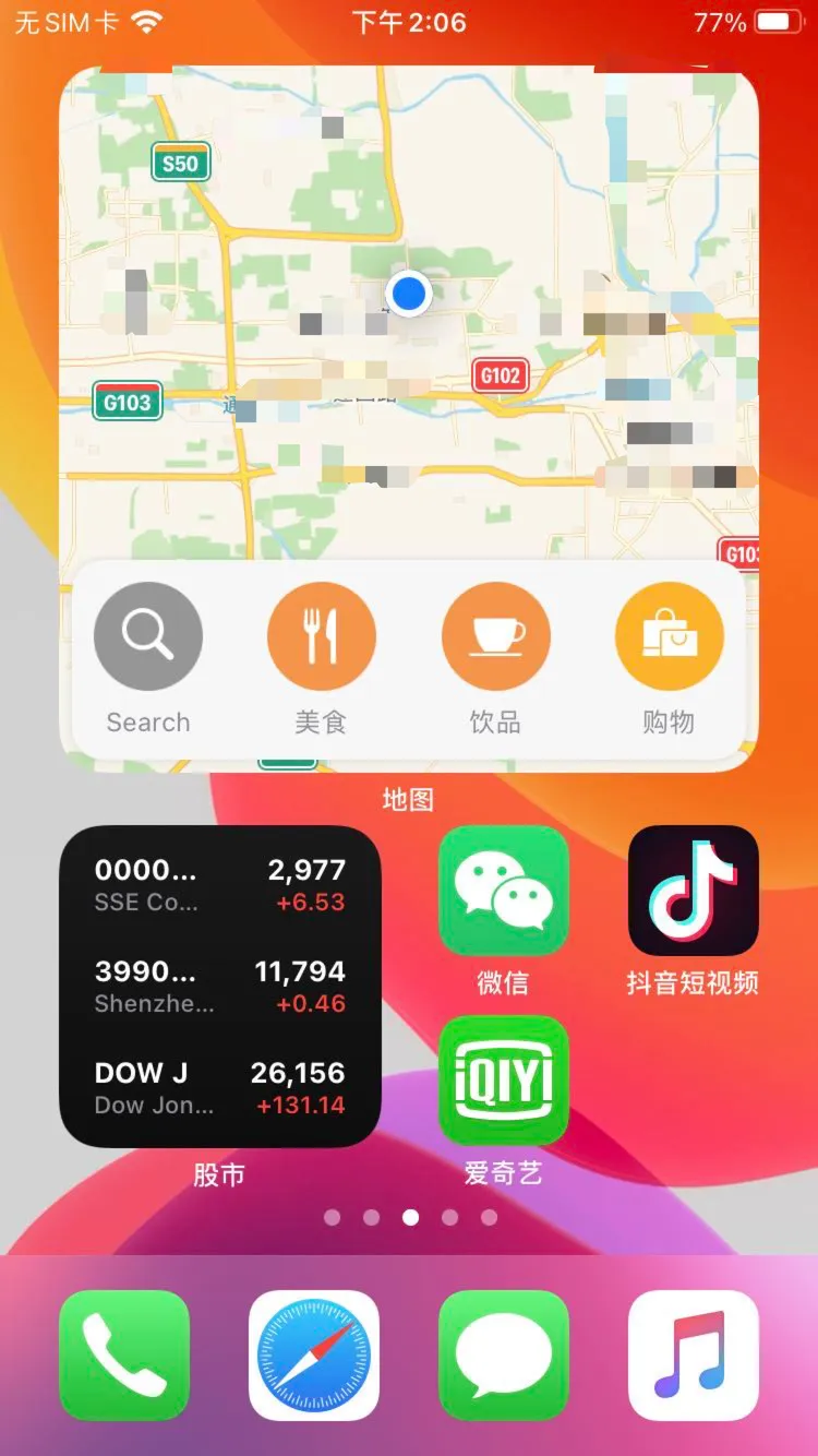 在 iOS14 里,咱们可以拖动它啦,相比之前单纯的左滑右滑,多了一种滑动方式。同时 iOS14 小组件把 iPhone 中的 App 变成了圆角卡片形式,在这上面可以显示更多的信息。目前像是天气、日历、地图、音乐等大部分系统应用,都支持以这种小部件的形式放在主屏幕。就像这样,只需要向右一拖,小部件就跟着移动出来了。有点 Windows Phone 那味了~