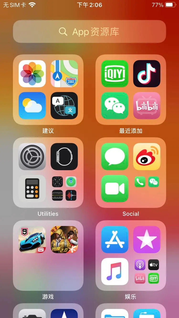 虽然说“小部件”功能有很多安卓的影子,但对于看腻了 iOS 系统的苹果用户来说,这次系统外观的改变,还是充满了新鲜感。iOS14 中引入了一个全新“App Library”页面,俗称“App 资源库”。