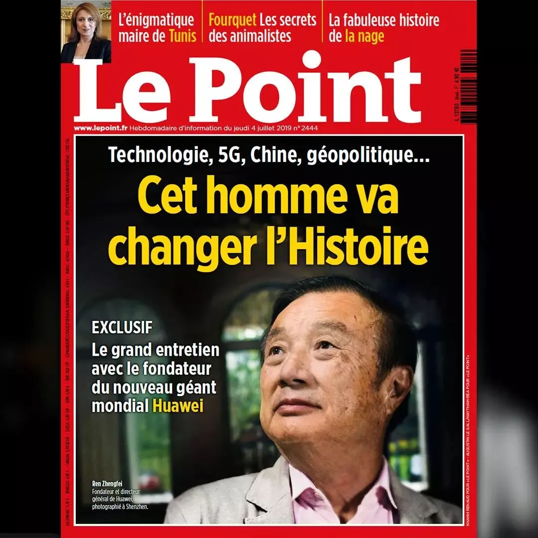 7月4日,法国新闻周刊杂志《观点》(Le Point)在推特上发布了最新一期杂志封面,华为董事长任正非担任主角。