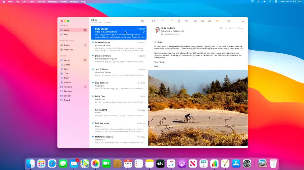 下一代 macOS,正式命名为 macOS Big Sur,采用全新设计,系统界面和图标都有了大变。macOS Big Sur 所有预装 app 的图表都变成了圆角矩形,与 iOS 相同。
