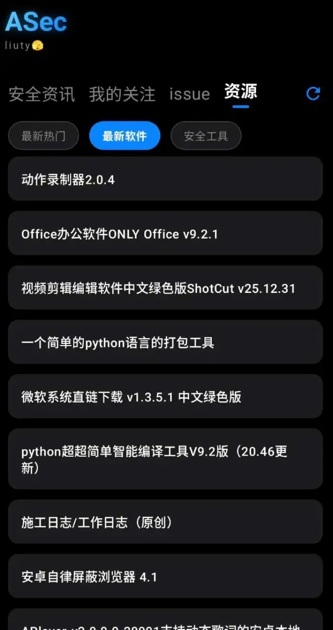 作为安全研究员,日常工作中总绕不开多工具切换、多源信息聚合的痛点——查资讯要翻多个社区,探漏洞要换不同平台,做测绘要记各类语法,繁琐操作往往占用大量核心研究时间。而今天要给大家安利的这款安卓端网络安全助手「ASec」,正是为解决这些痛点而生,集资讯、探测、漏洞、工具于一体,堪称移动端安全研究的瑞士军刀。 目前ASec仅支持安卓系统,为离线应用,开源仓库地址附在文末,欢迎各位大佬Star关注更新~
