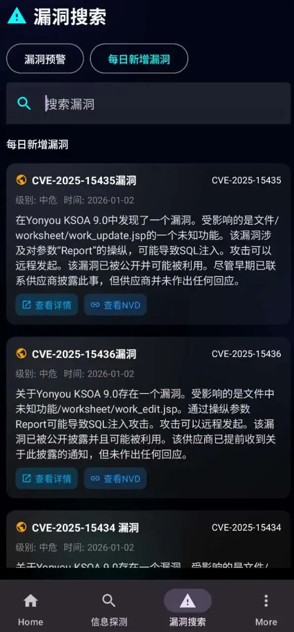 漏洞搜索优化中英文混合查询逻辑,重构每日新增漏洞模块输出展示,信息更清晰;