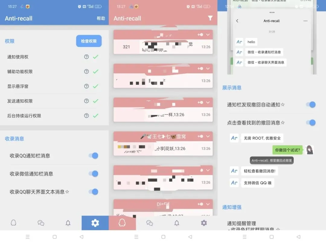 今天给大家带来一款 真正安全、不封号 的防撤回工具—— Anti-recall,安卓手机专属,高级功能免费用!