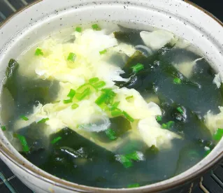 蒜蓉炒生菜、裙带菜玉米肉片汤
