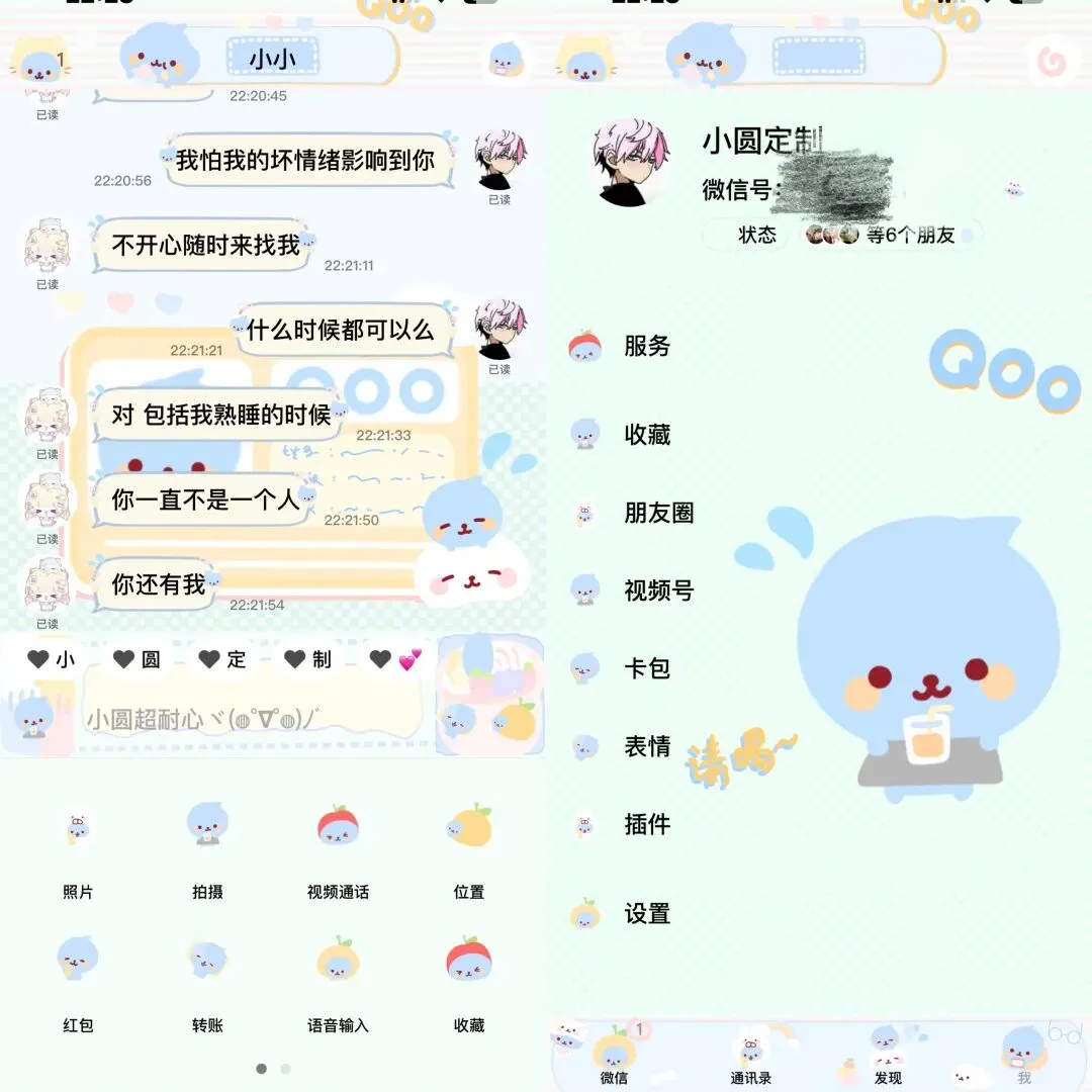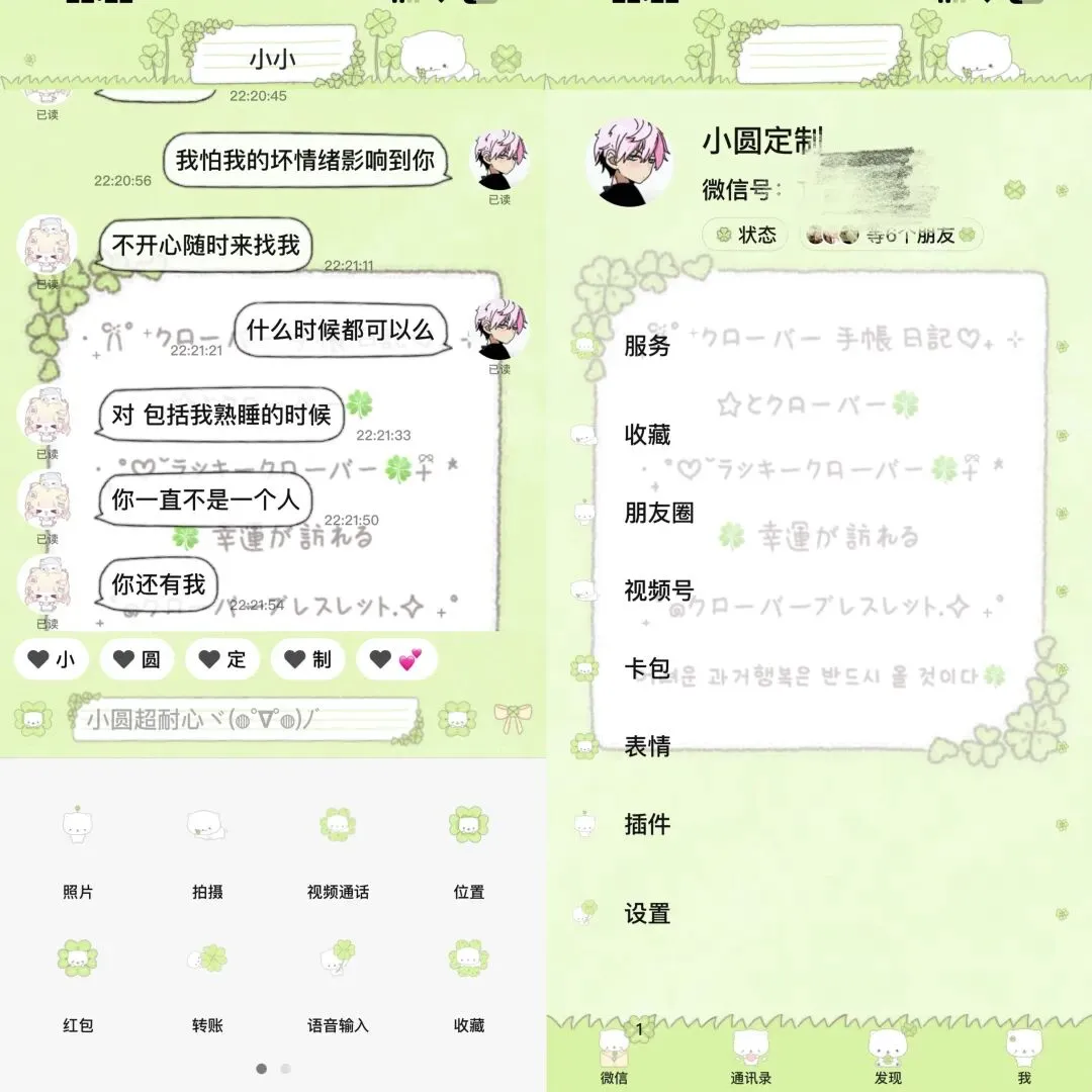 当然除了这些功能之外,定制v还有很多美化主题,气泡,字体,让你的微信也能穿上美美的衣服了(适用可爱的小姐姐们)