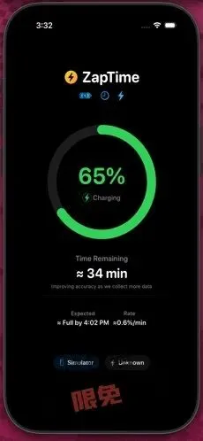 【ZapTime】一款显示手机剩余充电时间的应用。采用了基于观察到的充电行为、设备规格以及手机实时电池数据构建的智能估算模型,并以一个简单、友好的界面呈现,方便用户进行日常快速检查。