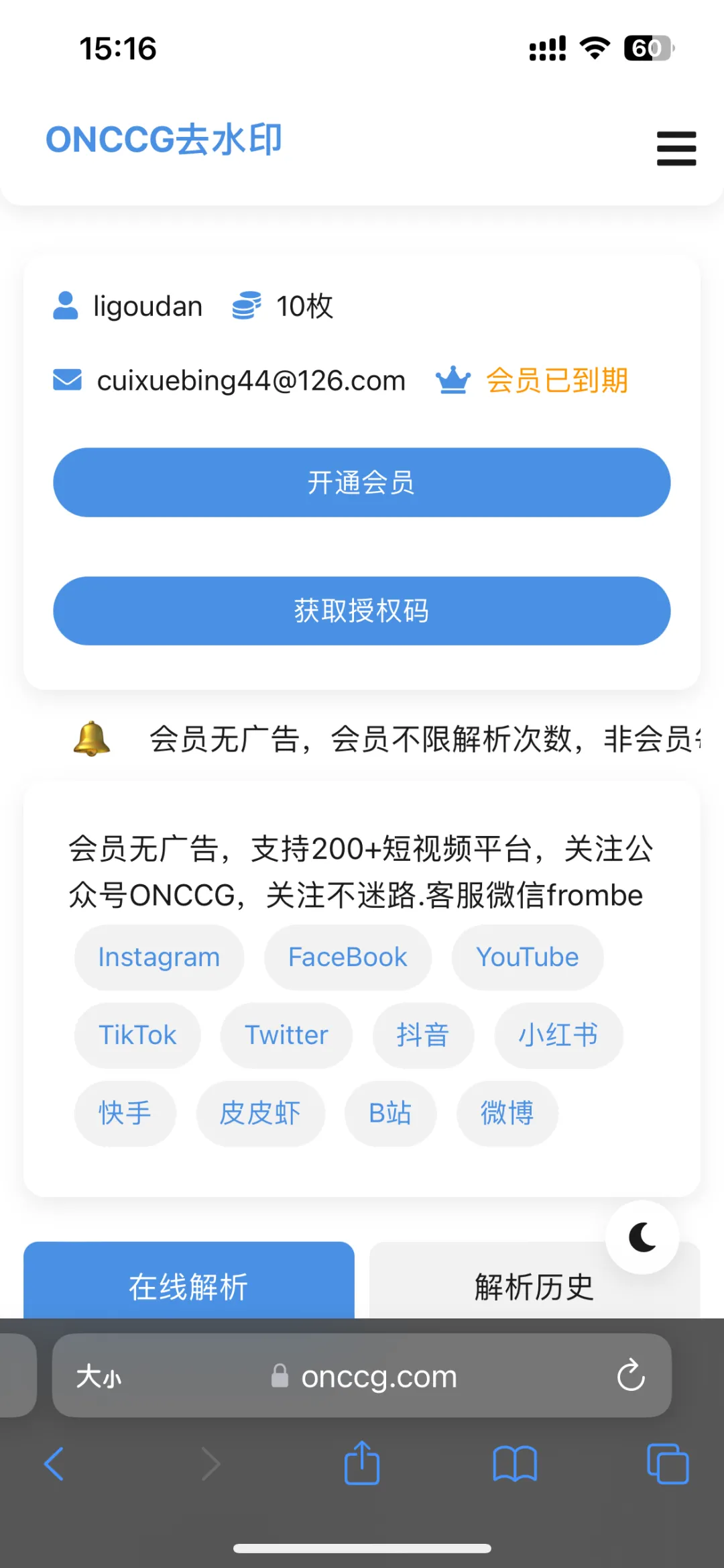 - 直接粘贴你从 https://www.onccg.com 获取的授权码,确认即可。