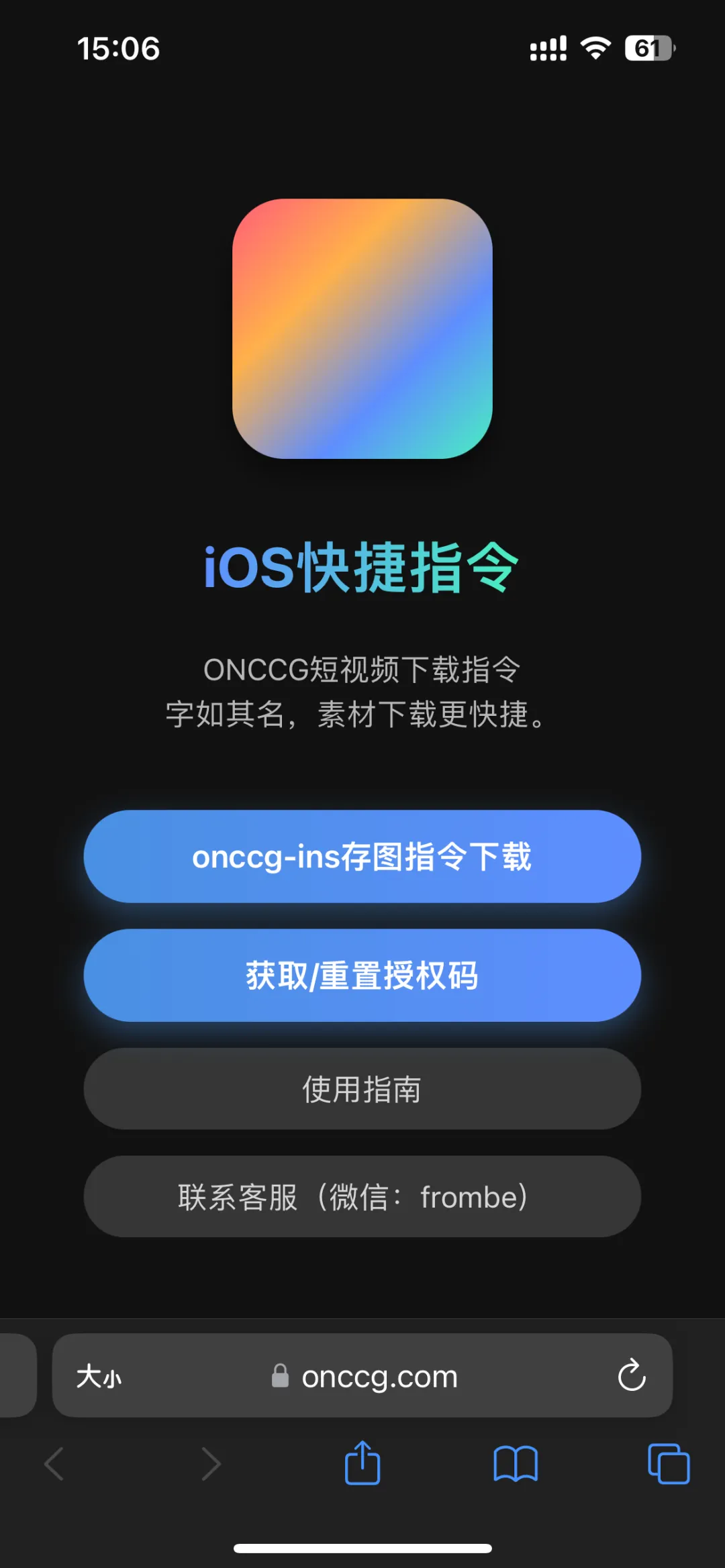 - 页面中找到 ONCCG-INS 存图指令 的下载链接,点击 “获取快捷指令”。