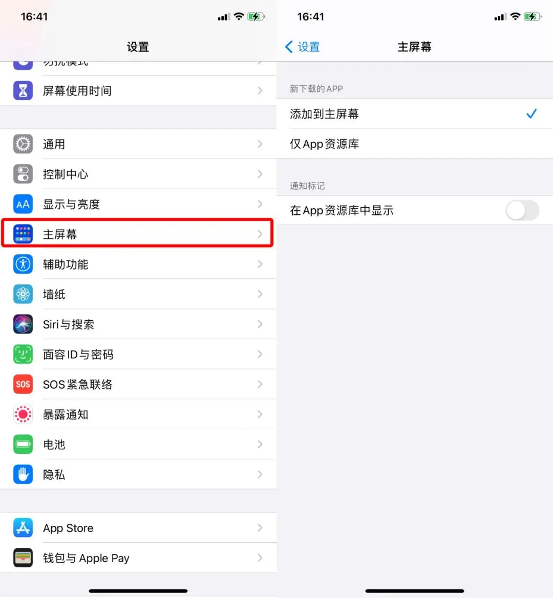 新增「主屏幕」选项。可以控制 App 下载到主屏幕或者是资源库。