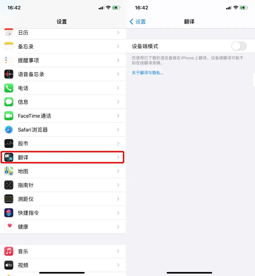 这里的「设备端模式」大概意思就是,开启后就会下载好语言,等到你没网的时候还能直接翻译。