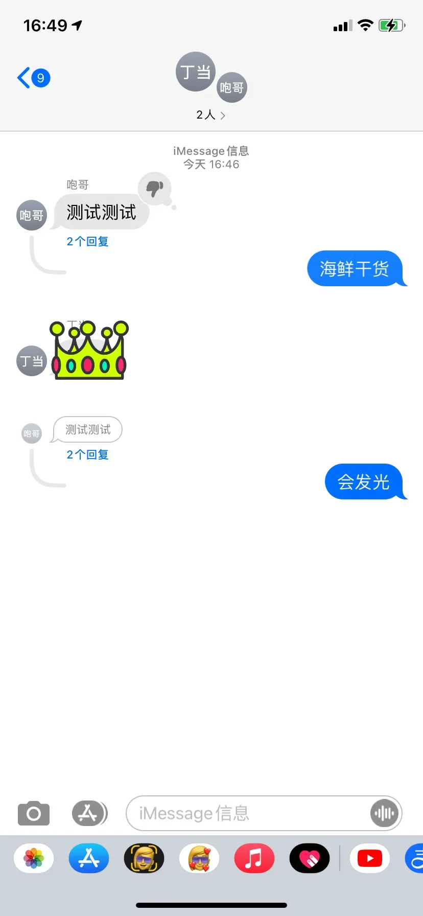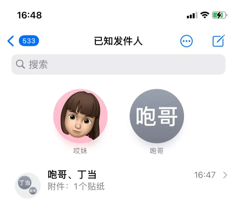 几乎是照搬微信,新增了群聊艾特、置顶、表情包功能,虽然大家不怎么用,但我还是介绍一下吧。在信息中,你现在可以把联系人置顶,而置顶的联系人如果正在输入、或者发来消息时,会在头像处显示。另外,信息群聊里新增了类似微信的精准回复、查看特定对话和「@」功能。信息分类列表新增了垃圾短信、交易短信的分类,并注明了过滤未知发件人,这可以帮助大家好好整理自己的信息。除此之外,还新增了 3 种拟我表情、11 种发型、19 种新头饰。