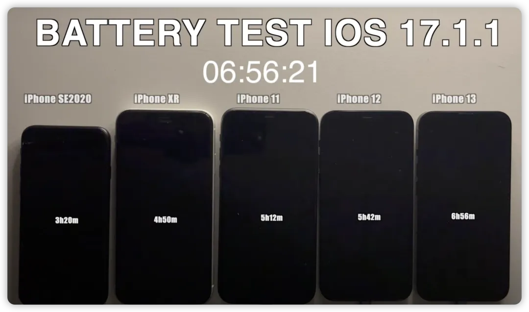 他通常会测试相同场景下、不同机型的续航时间,并进行横向对比,给出相对客观的电池续航参考。为了避免系统升级时的底层优化,对电池续航测试结果产生影响,这回 @iAppleBytes 仍然是在系统升级几天后,才正式开始测试。
