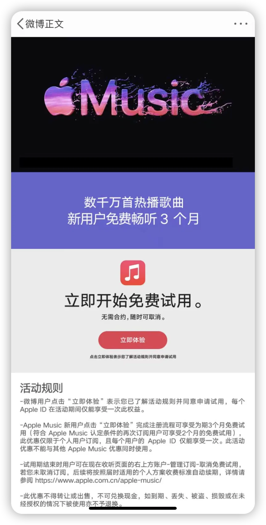 本次活动与之前基本一致,Apple Music 新用户可以免费领取 3 个月会员权益。