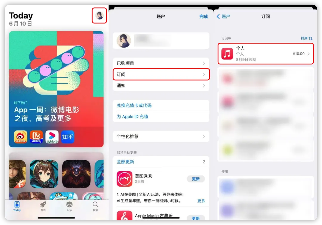 需要注意的是,老用户需要满足当前未处于 Apple Music 订阅状态,才可领取这一权益。也就是说,正在订阅 Apple Music 会员的用户无法参与这次活动。因此,建议大家在领取前先取消此前的订阅,并在会员过期后重新进入页面领取。苹果并未注明本次活动的截止日期,但还是建议满足条件的用户尽快领取,避免活动过期。对于仅想体验一下 Apple Music 会员的用户来说,可以在领取后取消会员的自动续费。大家可以进入 App Store,点击右上角的头像,在「订阅」中找到 Apple Music 订阅。如此一来,会员到期后也不会自动续费,避免大家因自动扣费造成不必要的损失。感兴趣的小伙伴,现在就去参与活动吧。