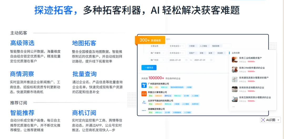 所以,如果您真的想要在AI时代,保持公司营销拓客的竞争力,探迹拓客,是您不错的选择。