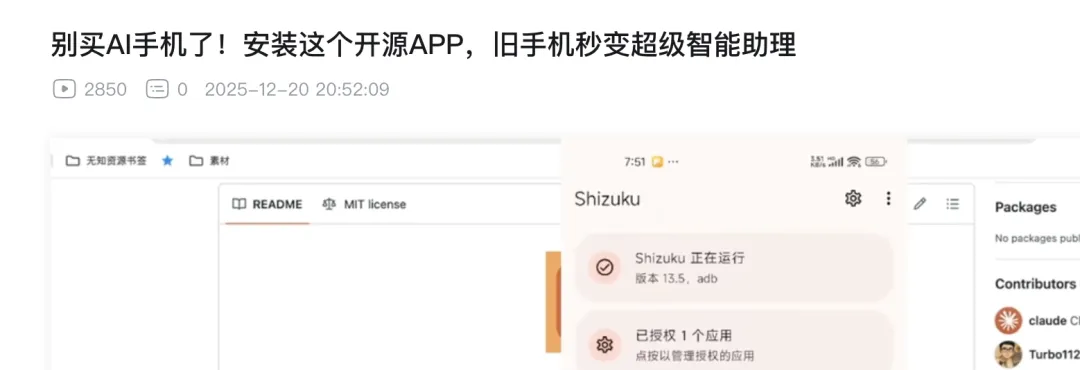 然后这个shizuku呢,你要是不会授权,可看这期视频。