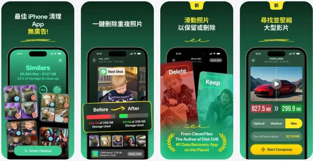 Clever Cleaner – 真正免费的 iPhone 清理应用!寻找一款 100% 免费、无订阅、无高级计划、无烦人广告的 iPhone 清理应用?试试 Clever Cleaner!这款功能丰富的应用由全球知名的 Mac 数据恢复软件 Disk Drill 的开发者打造,可快速优化 iPhone 存储空间。