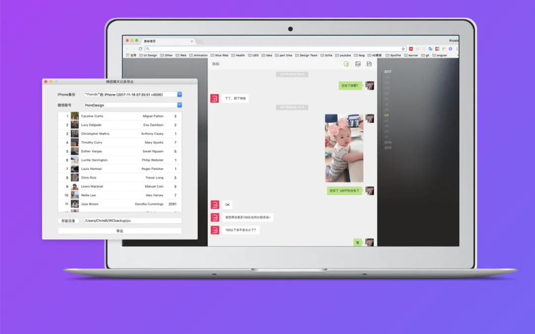 WX Backup可以说是不可多得的良心软件,只需将苹果设备以有线的方式连接到电脑,并进行未加密的系统备份,然后打开WX Backup便可以自动获取微信聊天记录。