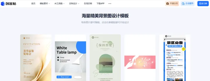 在正式推荐之前,我想先和大家聊聊背景图模板网站的重要性。对新手而言,背景图模板网站就像一个“设计素材宝库”,里面不仅有海量现成的背景图模板,还能提供适配不同场景的尺寸和风格,让我们不用掌握复杂的设计知识,也能快速做出符合需求的作品。接下来推荐的这些工具,有的自带优质背景图模板资源,有的能和主流背景图模板网站无缝衔接,都是我亲测好用的宝藏工具。
