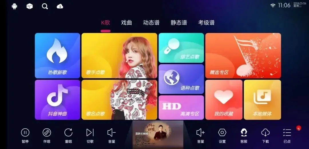 一款专为电视端设计的免费K歌软件,涵盖流行、经典、民谣、摇滚等多种音乐风格,还包含京剧等戏曲资源。