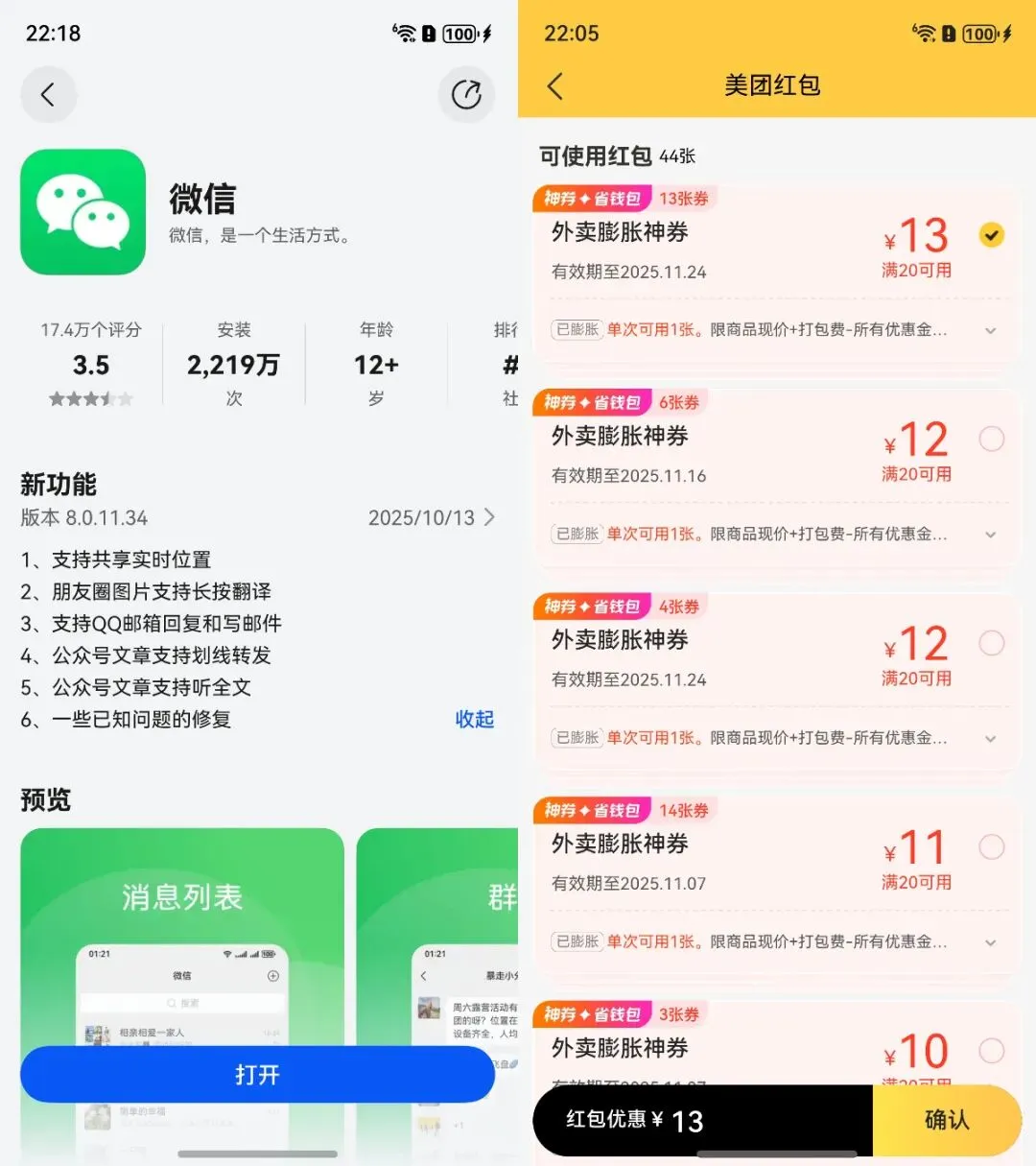 几天体验下来,可以惊喜地意识到,在那些容纳了我们绝大多数使用时间的「国民应用」上,生态的进展还在提速。腾讯旗下已有超过 60 款产品上架鸿蒙,微信每月一次重要版本更新,小步快跑补全了核心功能;淘宝的国补、美团的神券等与日常生活息息相关的体验也已经跟上。