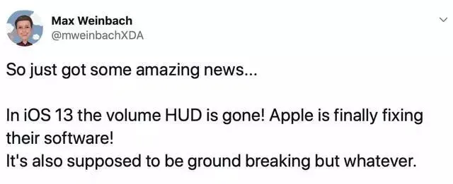 有开发者在 twitter 上透露,苹果 iOS 13 将取消那个烦人的音量调节界面!