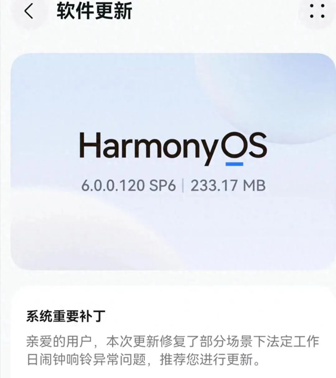233MB更新!鸿蒙6连续推送两个升级包,5A标识即将全面覆盖老机型
