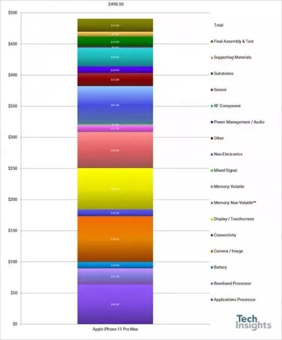 咆哥:不建议大家尝试!iPhone 11 Pro Max 成本不足 3500 元Techinsights 网站近日对苹果 iPhone 11 Pro Max 进行拆解,发现 512G 的iPhone 器件成本只要售价的三分之一。