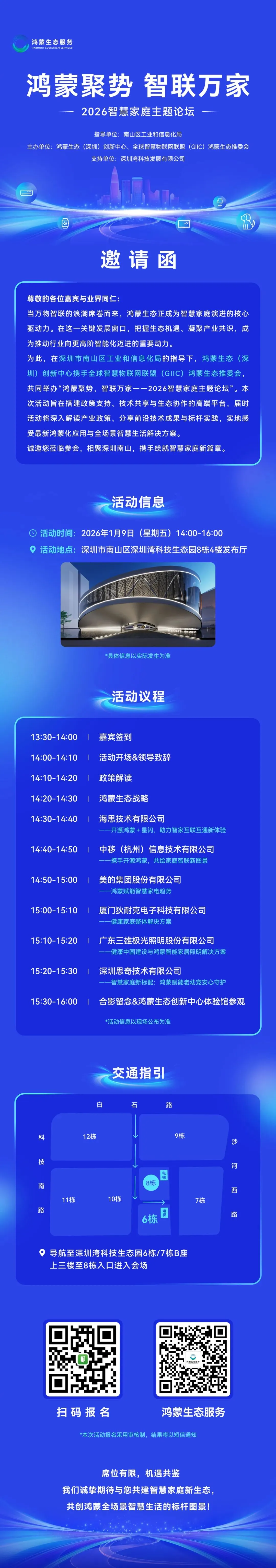 诚邀业界同仁齐聚南山,共探智慧家庭新机遇,共建生态合作新范式。欢迎扫码报名,携手开启万物智联新篇章!
