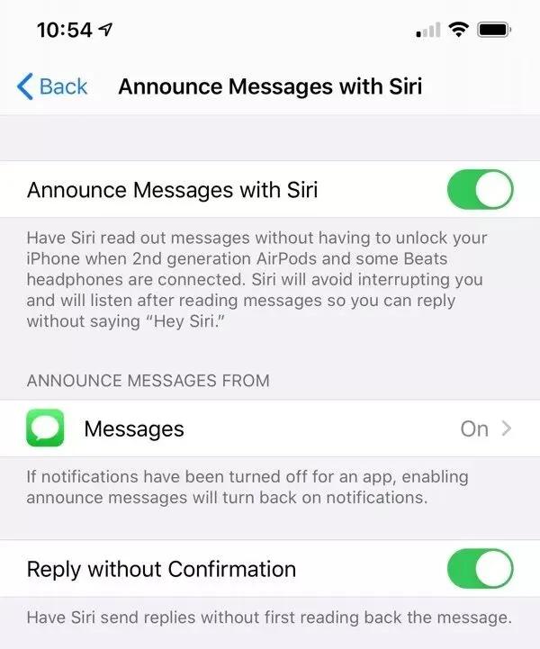 这个功能可以让 Siri 在第二代 AirPods 或者其他 Beats 耳机中自动播报新的短信消息,同时你也不用解锁 iPhone 就可以让 Siri 播报信息