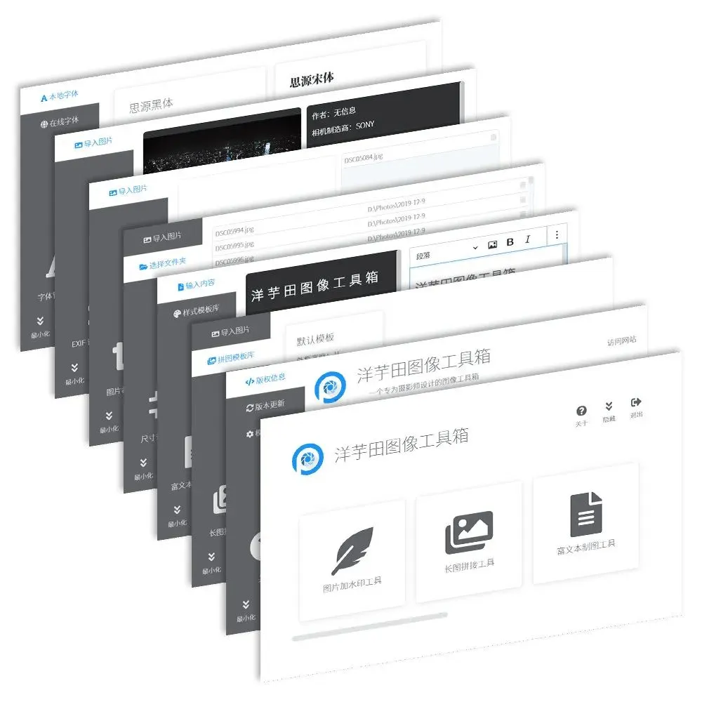 使用它可以批量给图片添加水印,支持长拼接,还可以富文本制图。