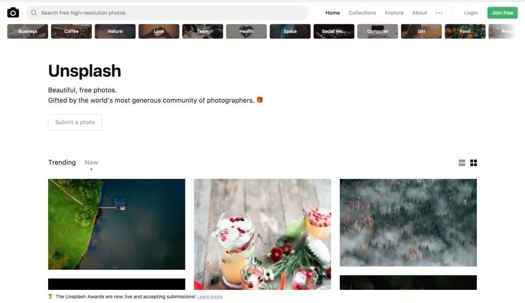 UnSplash 是一个免费的图库网站。