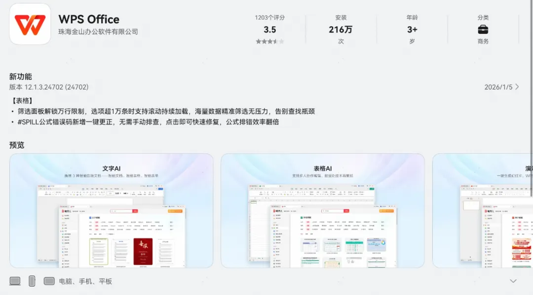 ✔【WPS Office】鸿蒙电脑端筛选面板解锁万行限制,SPILL公式错误码可一键更正