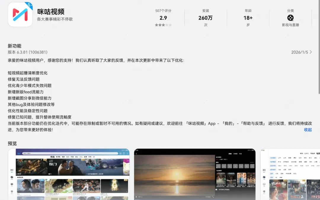 ✔【咪咕视频】鸿蒙电脑端优化起播清晰度、优化性能及稳定性