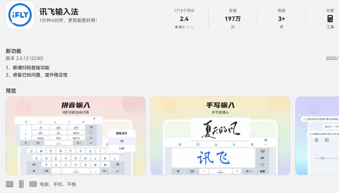 【讯飞输入法】鸿蒙电脑端新增扫码登陆功能、优化提升稳定性