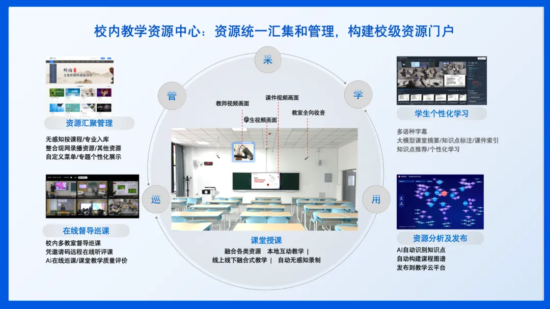 多场景覆盖:方案全面覆盖了常态教学、录播、远程互动、分组研讨等多元场景,提供包括板书批注、随堂答题、AI 巡课等一体化工具,满足了不同教学模式的需求 。