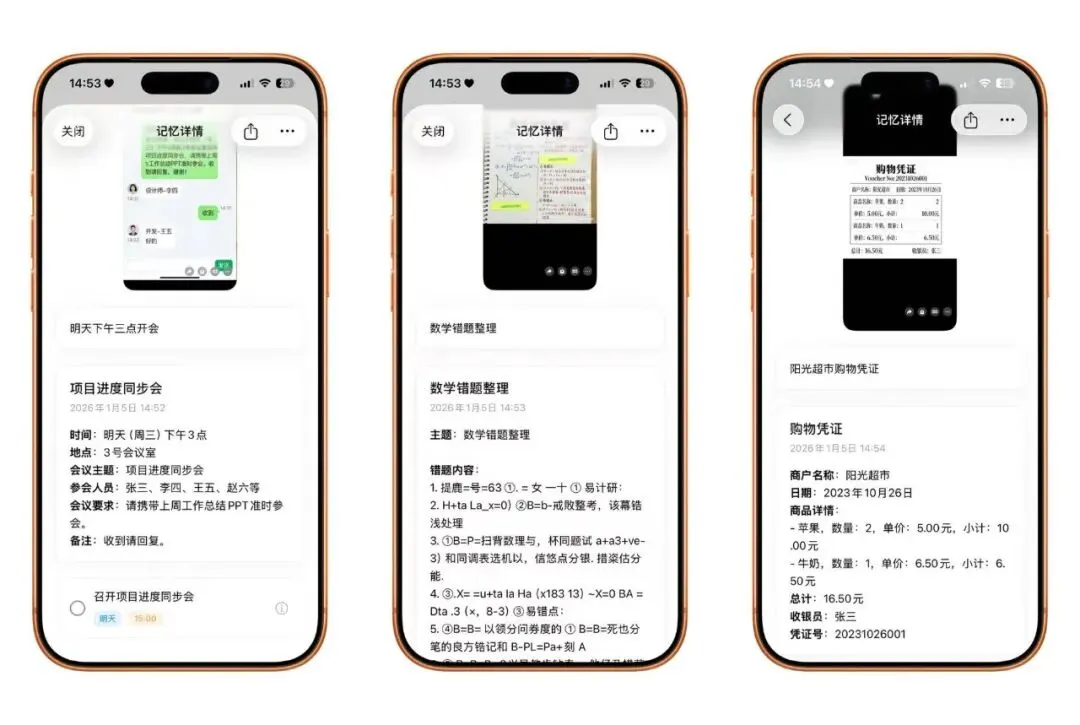 适配场景覆盖生活全维度:无论是职场人的会议通知、学生党的学习笔记,还是休闲时的观影计划、购物凭证,都能通过单次按键完成记录归档,AI 自动分类功能让信息整理更高效。