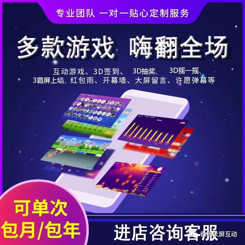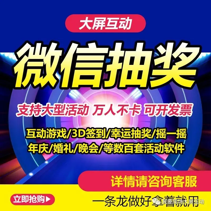 定制 微信上墙大屏幕签到抽奖软件婚庆砸蛋酒吧夜场年会现场互动摇一摇,微信现场抽奖,年会微信现场抽奖小程序,大屏幕互动、3D抽奖,摇一摇赛马,赛车,3D签到,弹幕,现场互动游戏,10多种功能,需要请联系我们,现接受预订,效果爆棚。