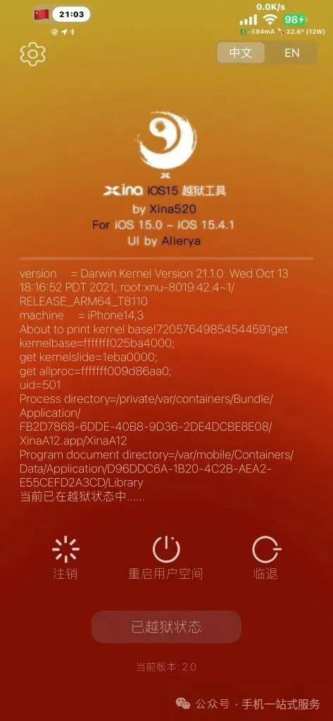朱心浪大神于昨日发布了新的Xina越狱工具。Xina-KFD版本现在支持iOS15.0~18.6越狱。